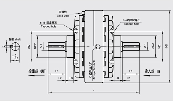實(shí)際滑差功率為 FL型磁粉離合器在無變速機(jī)構(gòu)的情況下卷繞材料所需的最大張力與最大卷繞半徑的乘積應(yīng)不超過額定轉(zhuǎn)矩,同時(shí)應(yīng)保證制動(dòng)器的實(shí)際滑差功率小于允許滑差功率。 在滑差功率滿足的情況下,把離合器放在高速級,則離合器的轉(zhuǎn)矩可以較小,則可將離合器放置于傳動(dòng)機(jī)構(gòu)的中間或后面,增大工作轉(zhuǎn)矩減小滑差。 需要重點(diǎn)注意的是,建議FL型磁粉離合器采用彈性聯(lián)軸器與原動(dòng)機(jī)或負(fù)載聯(lián)接,避免軸端承受徑向力,且當(dāng)采用皮帶或齒輪傳動(dòng)時(shí),需要用支架或其它相應(yīng)的機(jī)構(gòu)將它與FL型磁粉離合器隔離。
