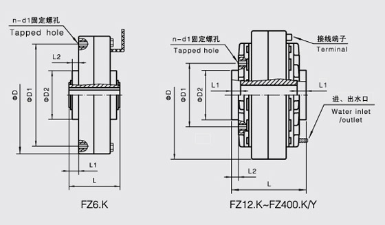 FZ-K型磁粉制動器是由主動轉(zhuǎn)子(輸入軸)、從動轉(zhuǎn)子(輸出軸)、含激磁線圈的磁軛組成,三部分相對同心裝配,形成了一個可以相對轉(zhuǎn)動的整體。