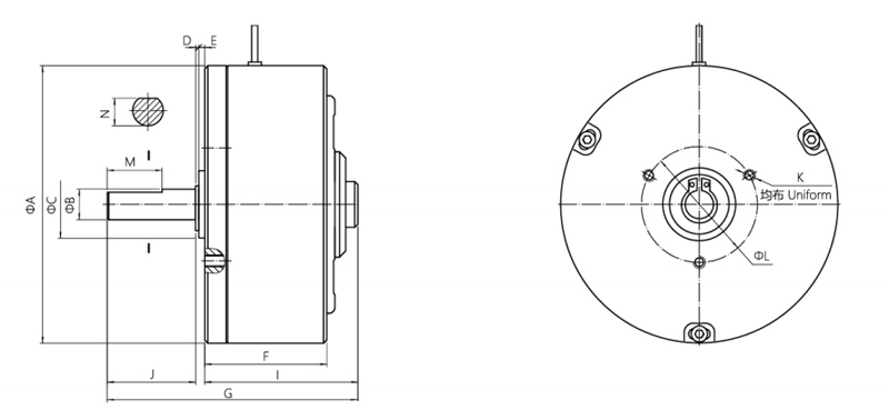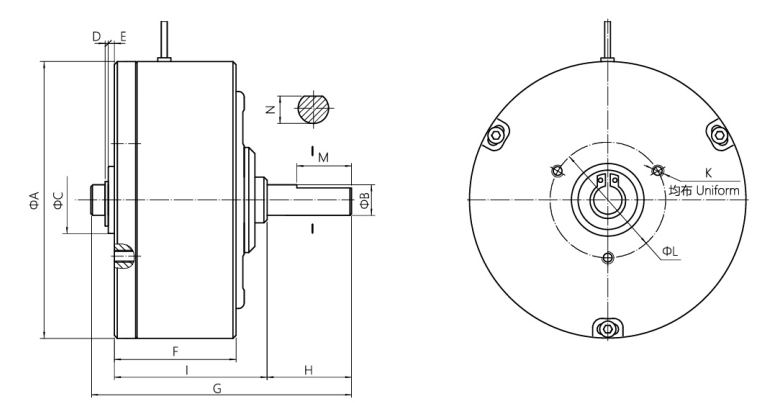 以自冷式磁滯制動(dòng)器為基礎(chǔ),內(nèi)部加以水冷卻通道,通過水冷卻來吸收連續(xù)滑差產(chǎn)生的熱量。具有噪音低、功率大的優(yōu)點(diǎn)。廣泛應(yīng)用于測(cè)試負(fù)載和高速大張力放卷場(chǎng)合。(具體尺寸請(qǐng)來電索。9.20