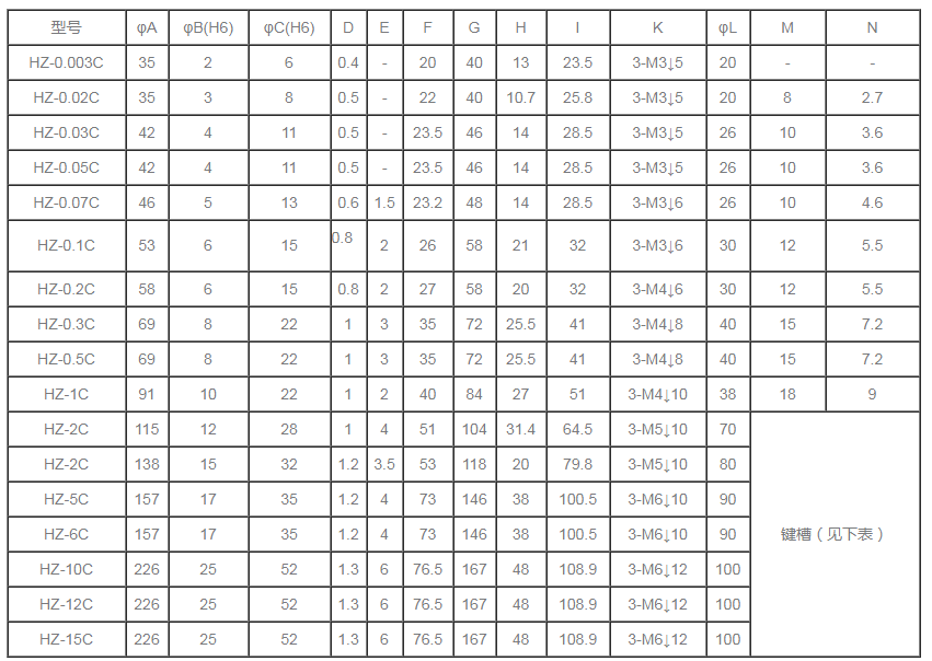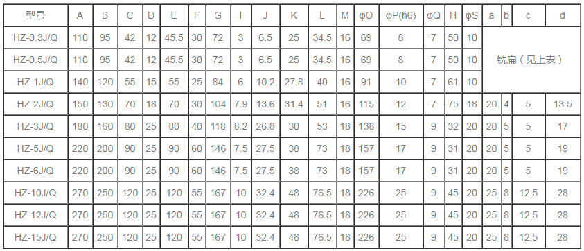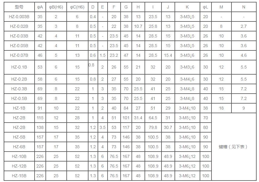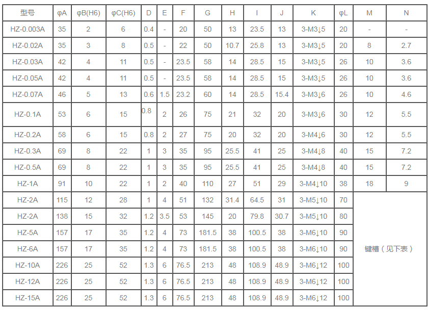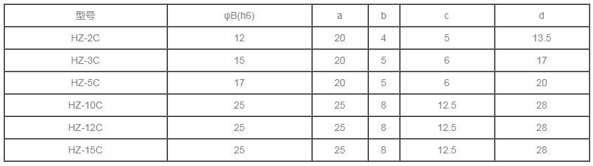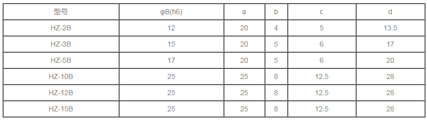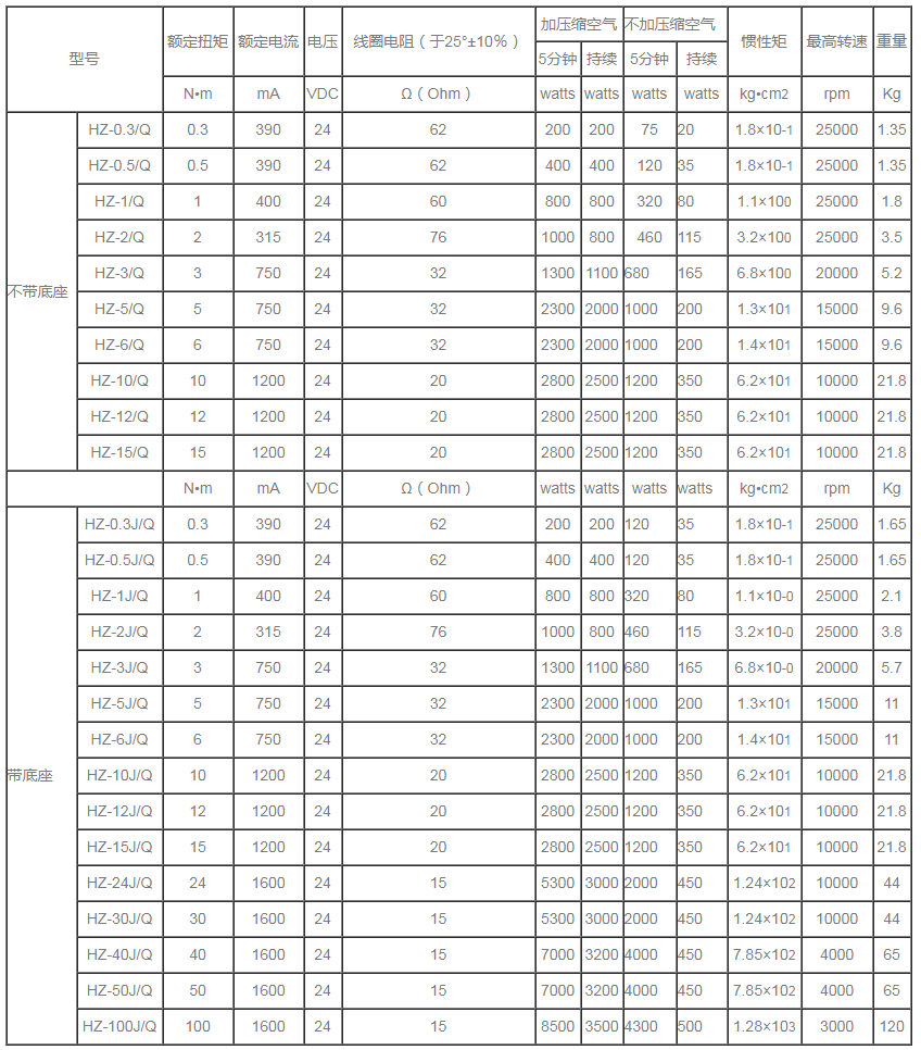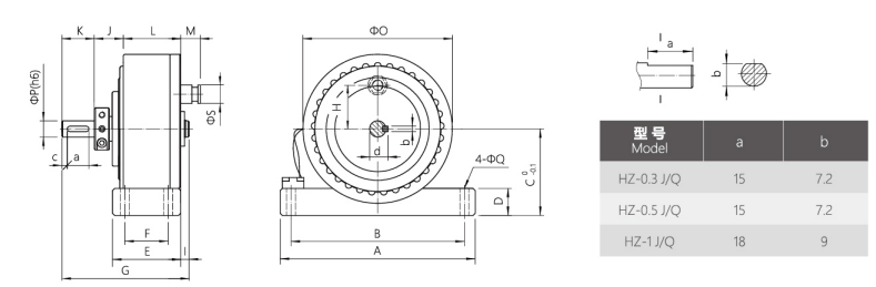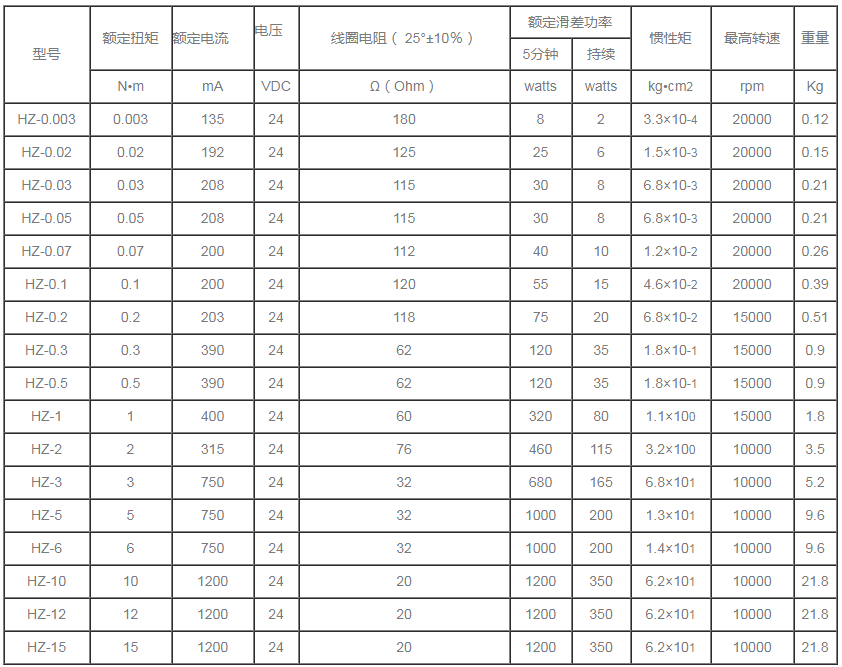 分為單出軸磁滯制動(dòng)器,雙出軸磁滯制動(dòng)器,空心軸磁滯制動(dòng)器。 HZ自冷式磁滯制動(dòng)器規(guī)格參數(shù)