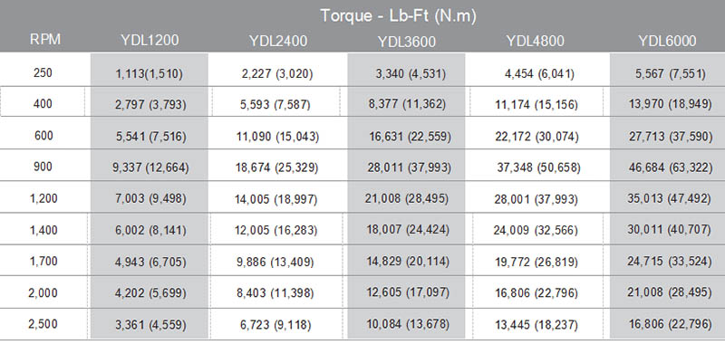 YDL型水力測功機扭矩曲線