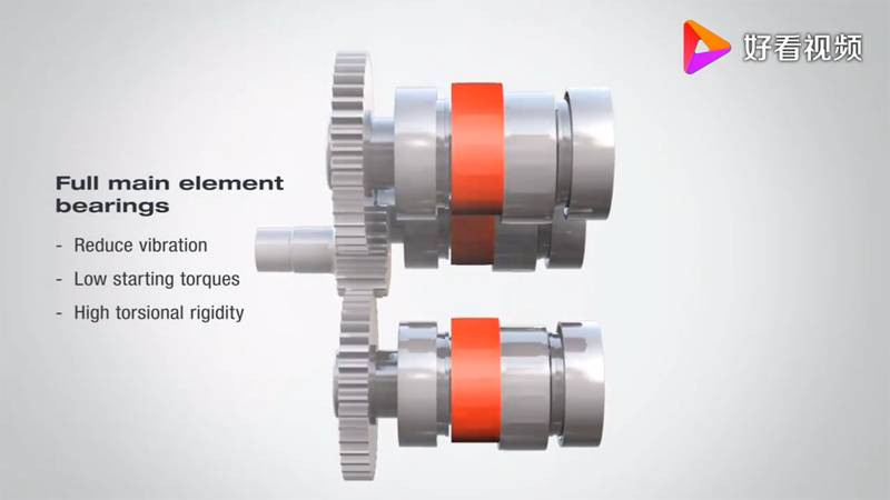 3個(gè)行星齒輪,同輸入齒輪驅(qū)動(dòng),行星齒輪帶動(dòng)曲柄軸旋轉(zhuǎn),曲柄帶動(dòng)RV齒輪朝相反方向旋轉(zhuǎn)。
